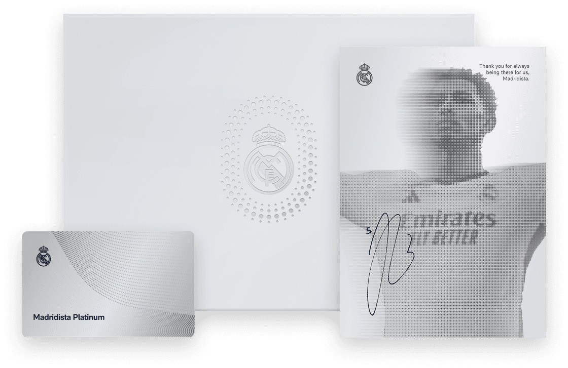 El Welcome Pack Platinum está diseñado para reflejar lo que eres: un Madridista diferente. Un carnet físico y una pieza exclusiva que convierte tu pasión por el Real Madrid en algo tangible.